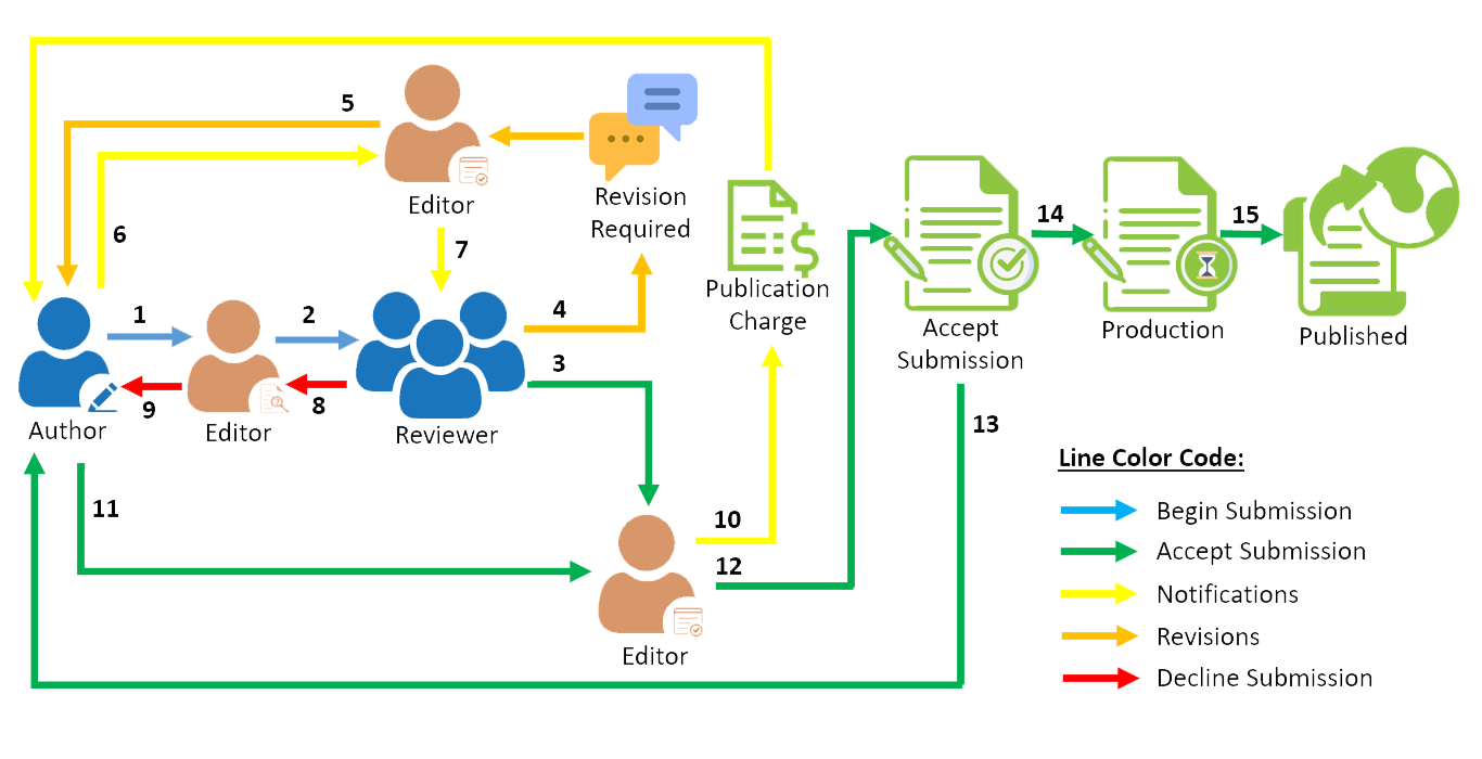 - The author submits the manuscript via OJS